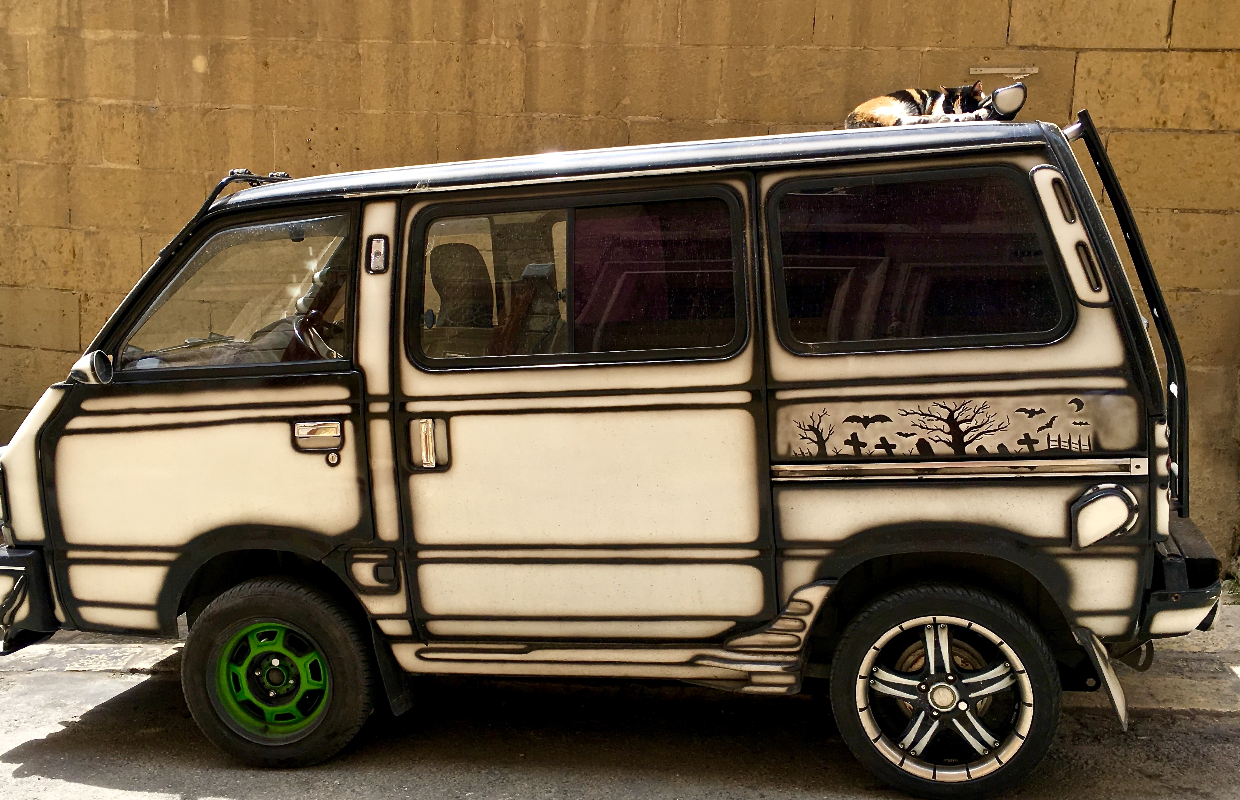 IMG_0545 October 5, 2017 3988 × 2573 Malta: Edibles, Art, and Getting Around Town I have no idea whether this Halloween-themed van can be rented. I just threw it in because it comes with its own color-coordinated cat (on the roof.)