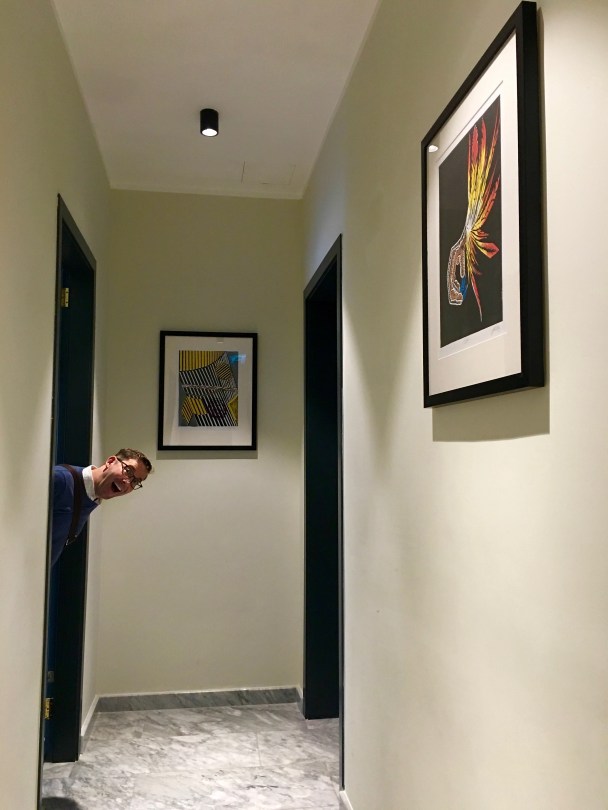 IMG_1903 October 6, 2017 3024 × 4032 Malta: Edibles, Art, and Getting Around Town Matthew’s quite excited about Jennifer Mallia’s woodblock prints in the hallway. The one on the right is a reference to the falcons raised by the Knights Hospitallers in the street where our hotel is located.