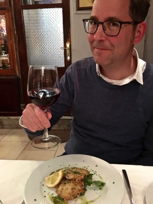 We couldn’t get enough of Rubino’s fish cakes — had them two nights in a row! Also intensely savory was the ox tongue with aubergines and capers, the sea bass involtini stuffed with pine nuts and mint, the pork fillets marinated in honey and thyme, and the spaghetti rizzi made with sea urchins. Beyond words terrific!