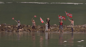 Again quite successful, the show not only helped skyrocket ticket sales aboard Hurtigruten’s ship the MS Nord Norge, but also launched a new Norwegian tradition for NRK minute-by-minute programs: that of grabbing your Norwegian flag and trotting out to greet the boat (or train) as it passed your town, thereby ensuring your two seconds of fame on film.