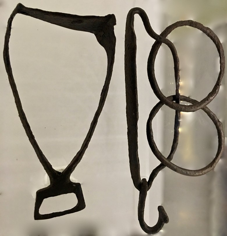 Stirrups didn’t become common for Scandinavian men until after the Viking Age. Because of its small size, this Viking stirrup (left) could only have been used by a woman. Other female equestrian gear, such as a wooden saddle equipped with a stuffed riding pillow, was also found with a horse skeleton in the gravesite.
