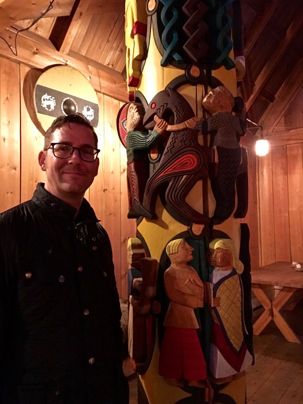 Okay, no actual gold here, but how ’bout some yellow paint? Much of Midgard’s Mead Hall was made by hand using traditional tools. Themes for carvings on the “staves” (pillars) come from tales of the Nordic gods. Local artisans are still working to complete all the interior finishes.
