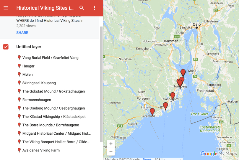 Map 2 of Vestfold Viking Trail November 9, 2017 1812 × 1216 The Borre Viking Mounds, Mead Hall, & More For those of you interested in following the Vestfold Viking Trail, here’s a map to show you rough proximity from Oslo. Click on the image to go directly to the navigable map with popups describing each site.