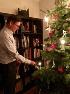 But this year we introduced a Norwegian custom to the mix — we had each member of the clan take a turn lighting real candles on the Christmas tree. Ideally I’d have loved to dance around the tree like Norwegians do, but I need someone to teach me the songs and steps first. Maybe someday….