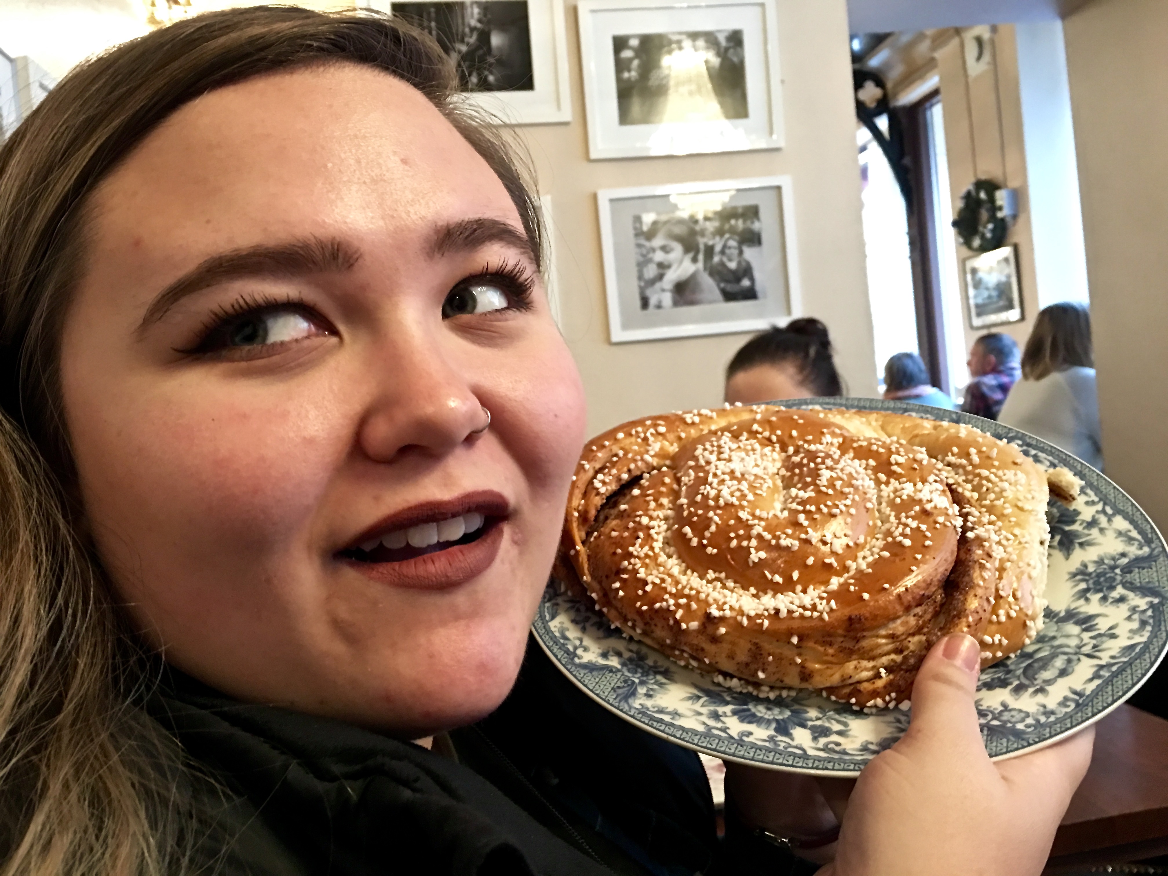 Café Husaren advertises itself as “Home of the Hagabullen,” the world’s largest kanelbullen (cinnamon buns). Seriously, these things are Princess-Leia-hairdo-sized.