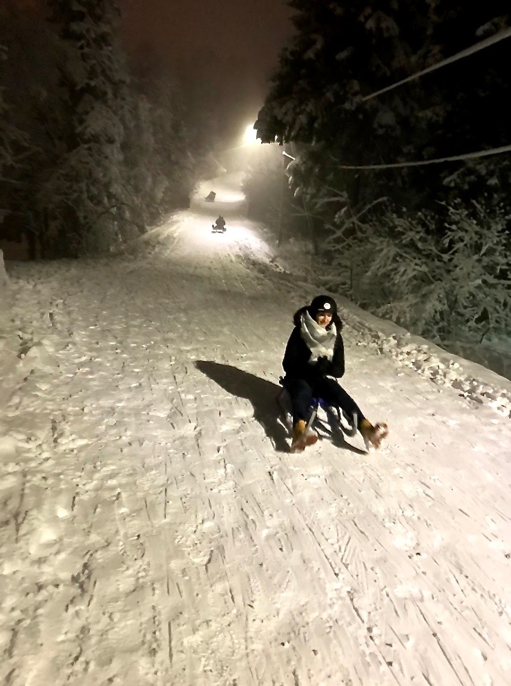 For about $20, you get a sled and helmet, and the opportunity to take the Korketrekkeren sled run as many times as you like. (To hear about Matthew and my virgin run down the slope back in 2014, check out my post, Sledding on Christmas Day.)