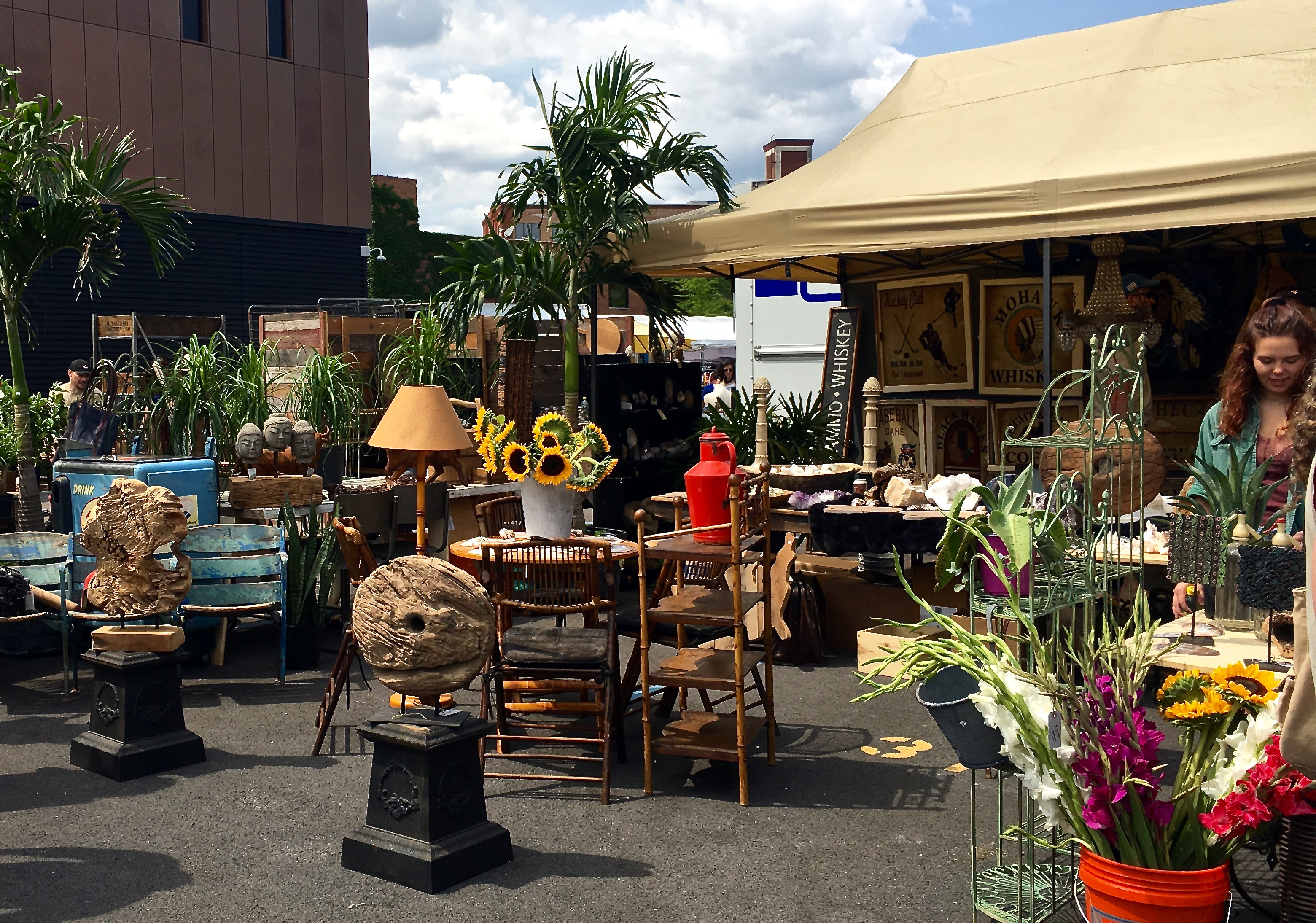 IMG_9381 August 9, 2018 3121 × 2189 Sweet Home Chicago? During the summertime, the huge parking lot surrounding the Plumbers Union Hall holds vendors selling everything from antiques and art to flowers, clothing, and artisan-made furniture.