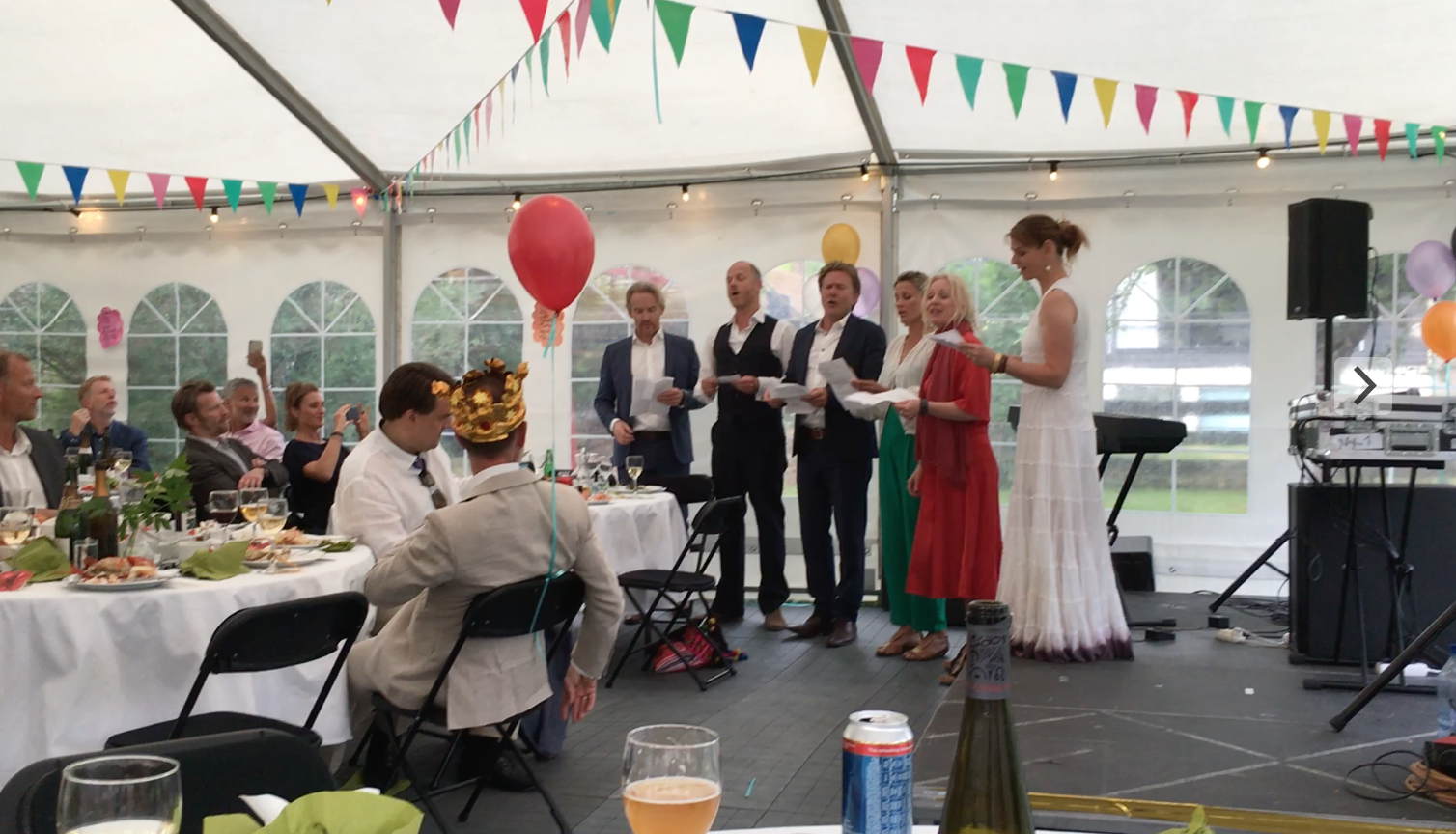 Here’s perhaps my favorite thing about Norwegian parties — people love to sing at them. (I so wish Americans would adopt this practice!) Vidar’s wife Sophie (far right) composed a couple of really funny songs about Vidar and performed them with her choir. Afterwards, a fabulous DJ took to the stage and everybody came out on the dance floor. Again, not something you see much of at American birthday parties.