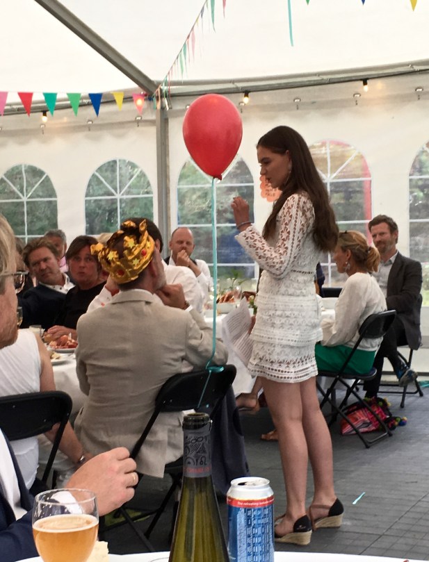 Lots of toasting is part of any Norwegian party — here, Vidar’s youngest daughter Agnes gives a sweet toast to her papa. Although we probably only understood about every fifth word of each toast, we had a friend sitting next to us who did a lot of translating, and we laughed until our cheeks hurt. I think it’s great that Norwegians toast so much; it gives kids a chance to really get comfortable speaking in public (something I have a gut-terror fear of.)