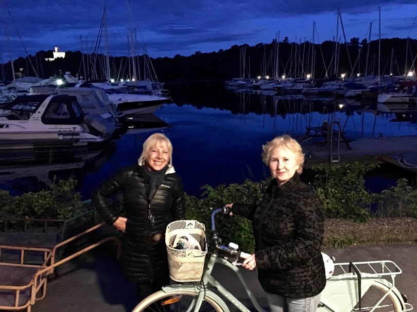 IMG_8034 August 21, 2018 4032 × 3024 Hotels, Norwegian Healthcare, and A Harbor Cruise Leslie and Jane stand outside the boathouse, with the last vestiges of the midnight sun turning the sky purple. It’s actually about 2:00 a.m. in this photo.