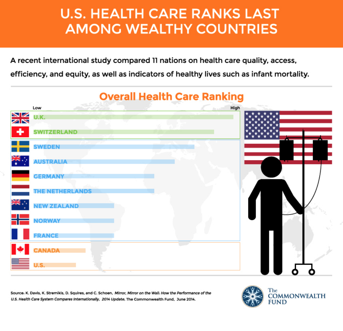 I know we’re taught in the U.S. that we have the world’s best healthcare systems, but that’s simply not true. As you can see from this 2014 data graphic, the U.S. ranks last out of 11 nations in terms of access, efficiency, and equity. But Norway actually ranks last in terms of preventative medicine. Basically the lesson is, no matter where you are, you have to advocate for your own health. (Click on the image to go to the article.)