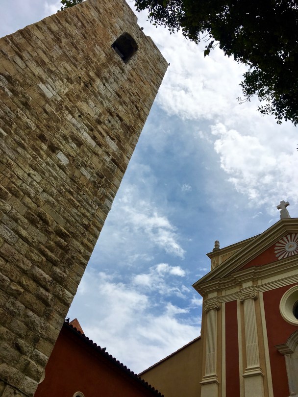 IMG_3466 October 25, 2018 3024 × 4032 Ancient Antibes On the right is the Church of the Immaculate Conception, whose Chapel of the Holy Spirit houses the remnants of a Greek temple. The bell tower on the left dates to around 1050 and is made from stones pillaged from the town’s Roman ruins.