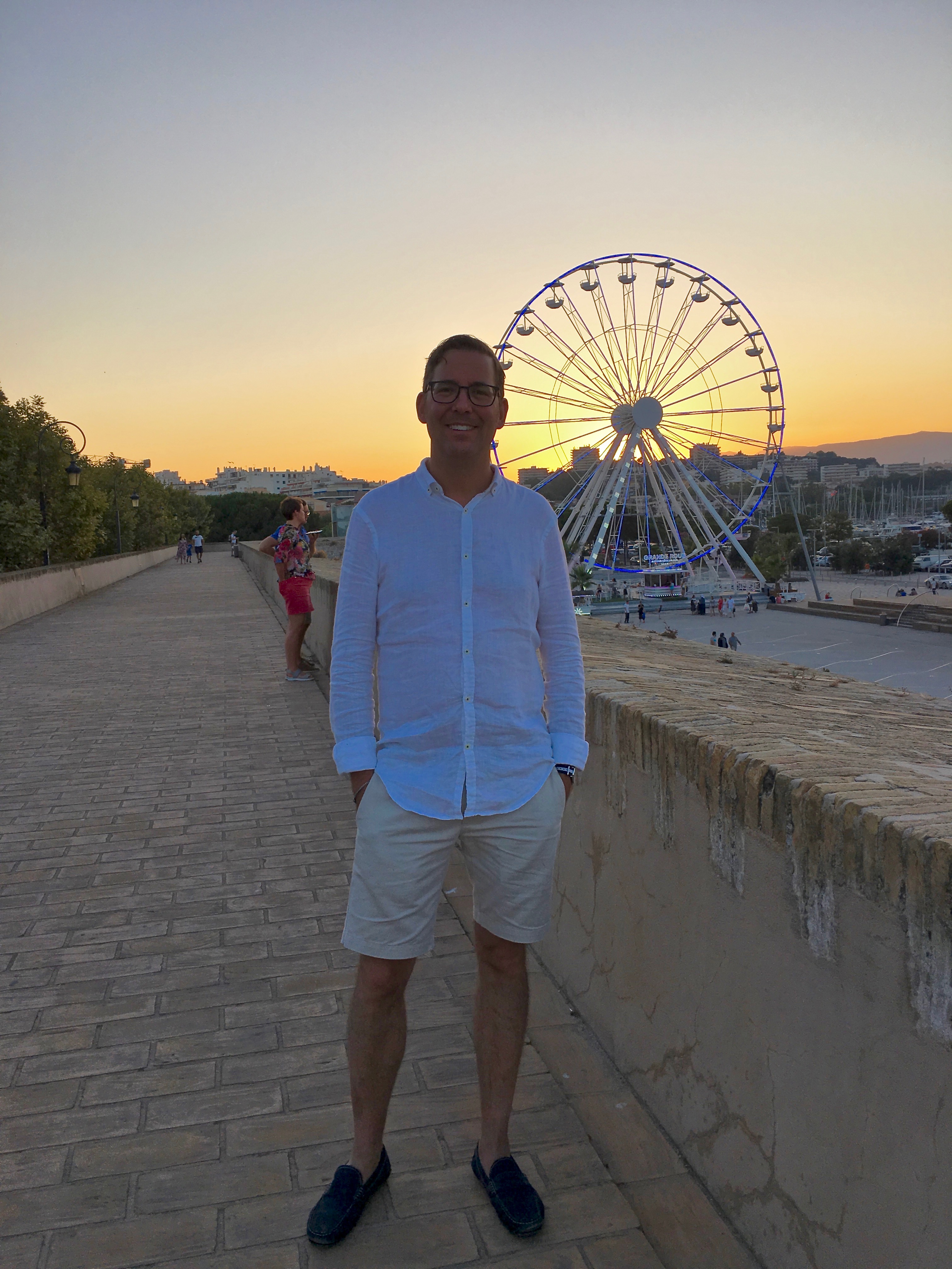 IMG_3952 October 30, 2018 3024 × 4032 Ancient Antibes A sunset stroll atop the ramparts is not to be missed. The Ferris wheel in the background is set up for July 14th, France’s National Day.