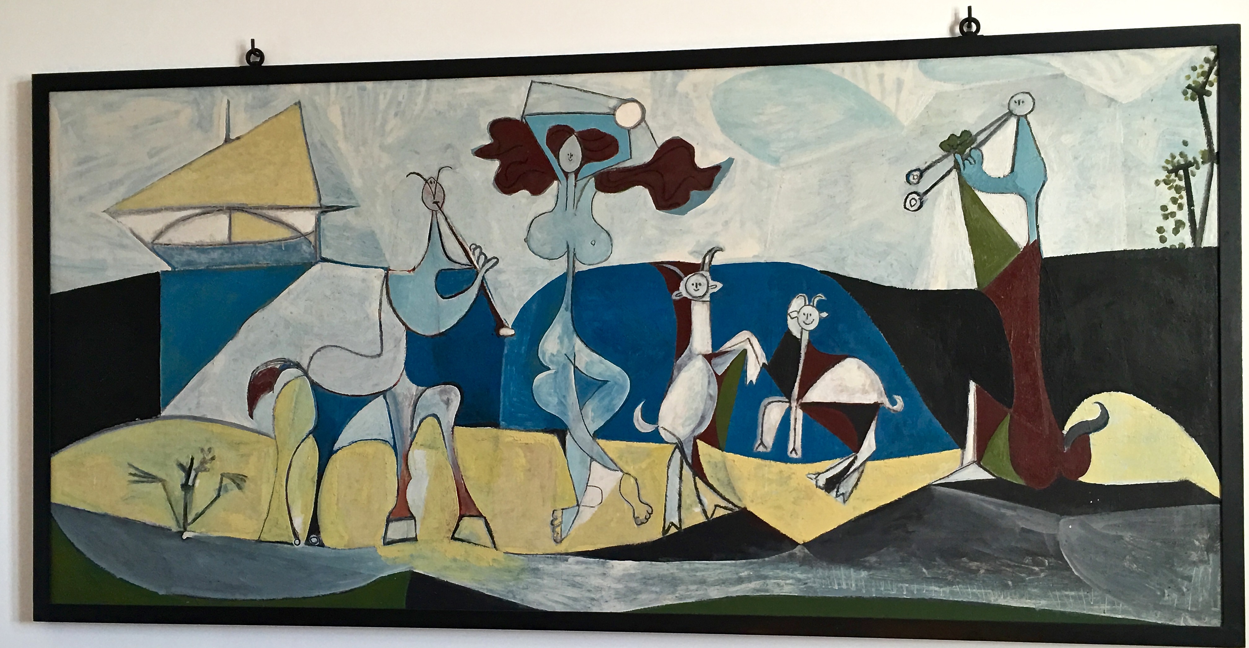In the painting “Joie de Vivre (Antipolis),” fauns, satyrs, and a big-breasted woman (Picasso’s nubile girlfriend, French artist Françoise Gilot) cavort nude in nature. Some art critics say the painting represents not only Antibes’s classical roots, but also Picasso’s ebullience after WWII. Others say he intended to mock a painting of the same name created by his rival Matisse, who’d expressed the bourgeois attitude that art should be pure, serene, and “devoid of troubling or depressing subject matter.”