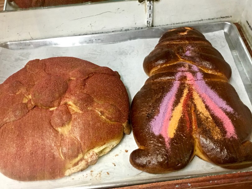 IMG_0449 November 9, 2018 4032 × 3024 Halloween in Oslo & Chicago Here’s another closeup showing different kinds of the Pan de Muertos. They all taste somewhat similar, but it’s fun to see the different details.
