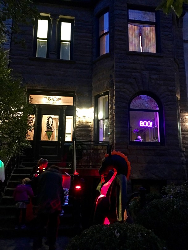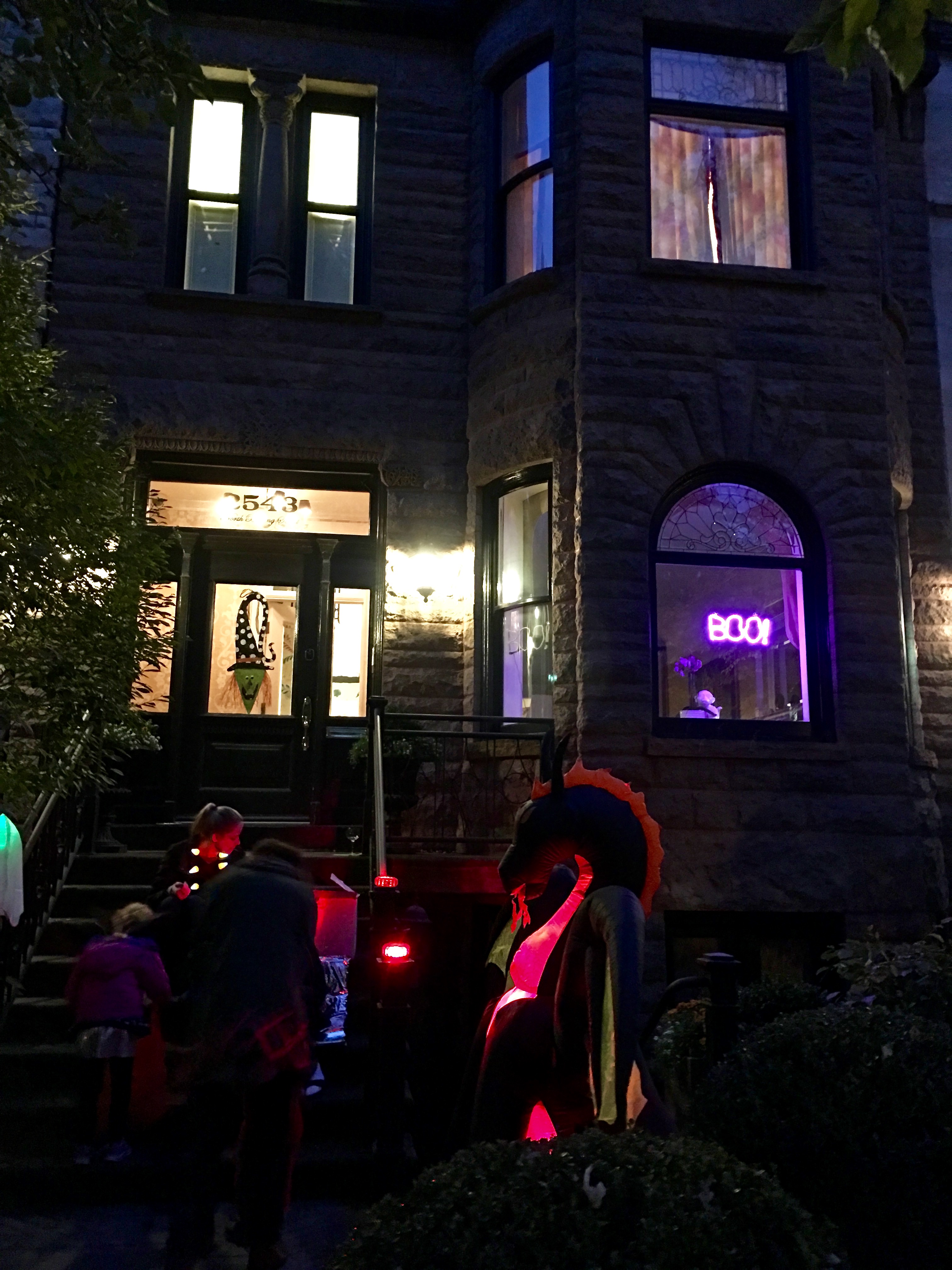 IMG_0529 November 9, 2018 3024 × 4032 Halloween in Oslo & Chicago Yes, that’s a giant blow-up dragon in the front yard, complete with a fire roiling in his belly.