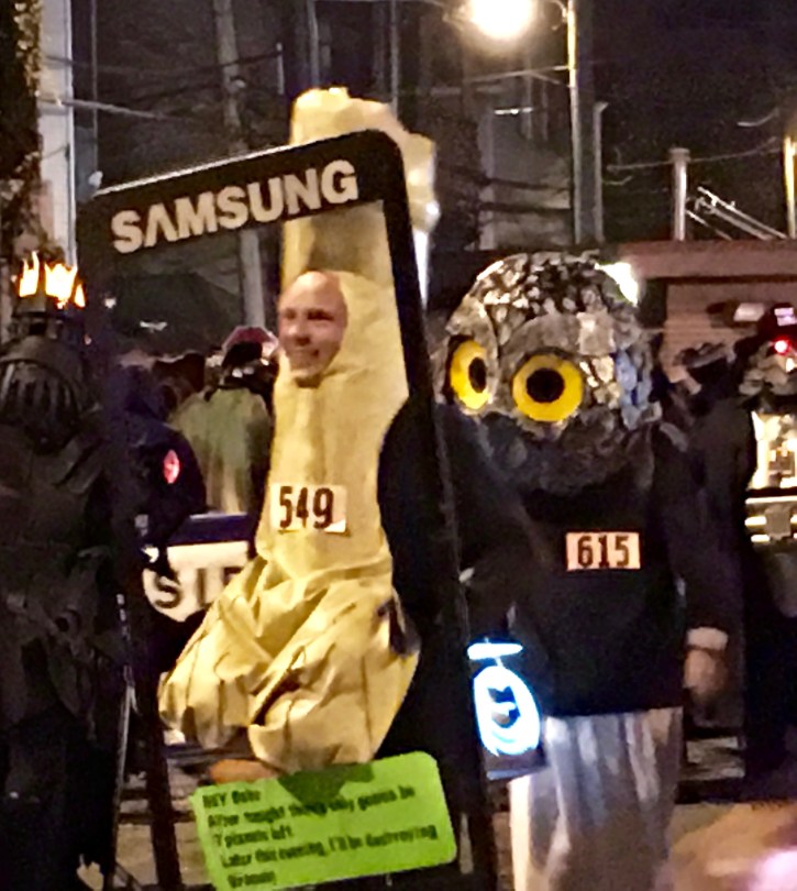 IMG_0568 November 9, 2018 2705 × 3024 Halloween in Oslo & Chicago “Dick Pic” won Funniest Costume. His text says, “HEY babe. After tonight, there’s only gonna be 7 planets left. Later this evening, I’ll be destroying Uranus.”