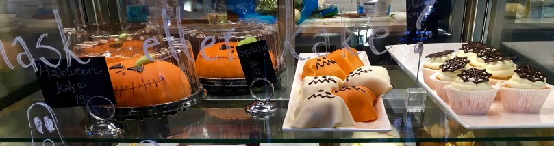 IMG_7601 November 7, 2018 3837 × 1018 Halloween in Oslo & Chicago My favorite bakery, Baker Hansen, offered these cuties for Halloween. You can just barely see the phrase “Trick or Treat” in Norwegian written on the glass. It’s “knask eller knep.”