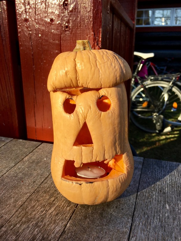 img_8665 January 31, 2019 3024 × 4032 Halloween in Oslo & Chicago Here’s the first real jack-o-lanterns I saw in Norway, creatively made out of a Butternut squash.