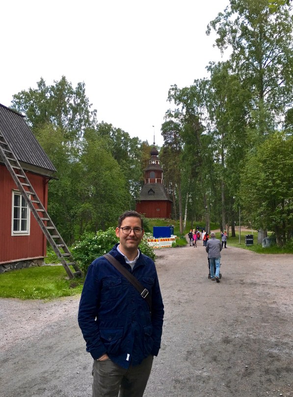The church on the left hosted the official wedding ceremony. In the background is the gorgeous onion-domed bell tower. The church, which dates to 1685, was moved from Karuna Sauvo, Finland, and is now the oldest building at Seurasaari. The bell tower dates to the early 1700s.
