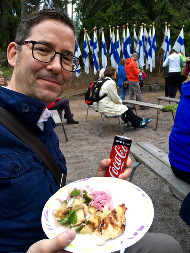 IMG_3015 July 3, 2019 3024 × 4032 Midsummer in Finland Matthew’s plate displays some traditional Finnish Midsummer food: a meat pasty, sauerkraut, and potato salad made with dill. Sausages are common, too, but those went first in the buffet line.