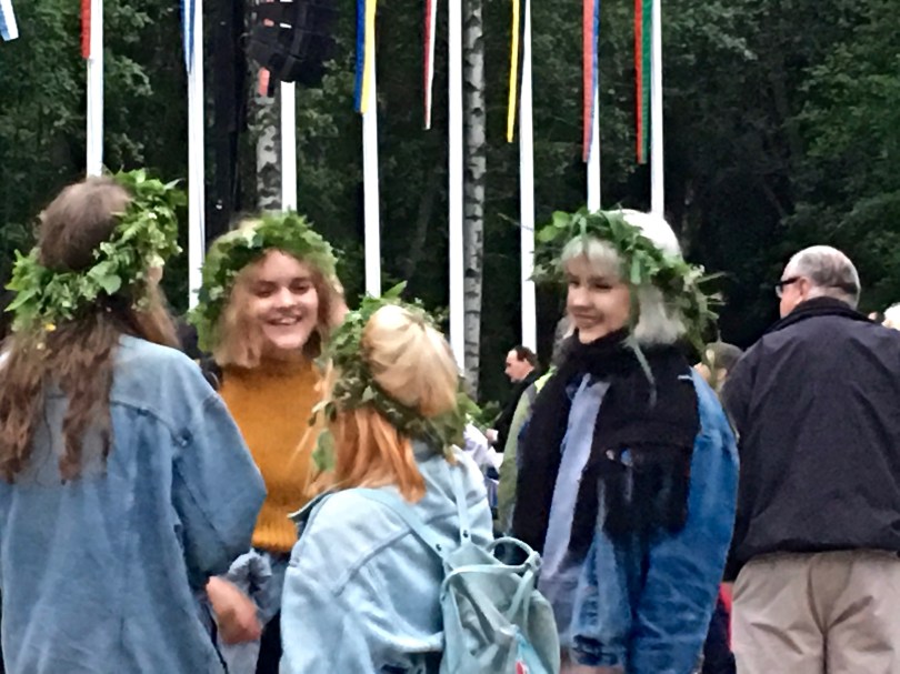 This bevy of blonde beauties sport crowns that include clover, another magical love herb. According to Finnish lore, if the girls were to circle a field three times at midnight while holding a clover to their naked breast, they’d see the face of their future husband (probably peering at them through the weeds as streaked naked in the moonlight.)