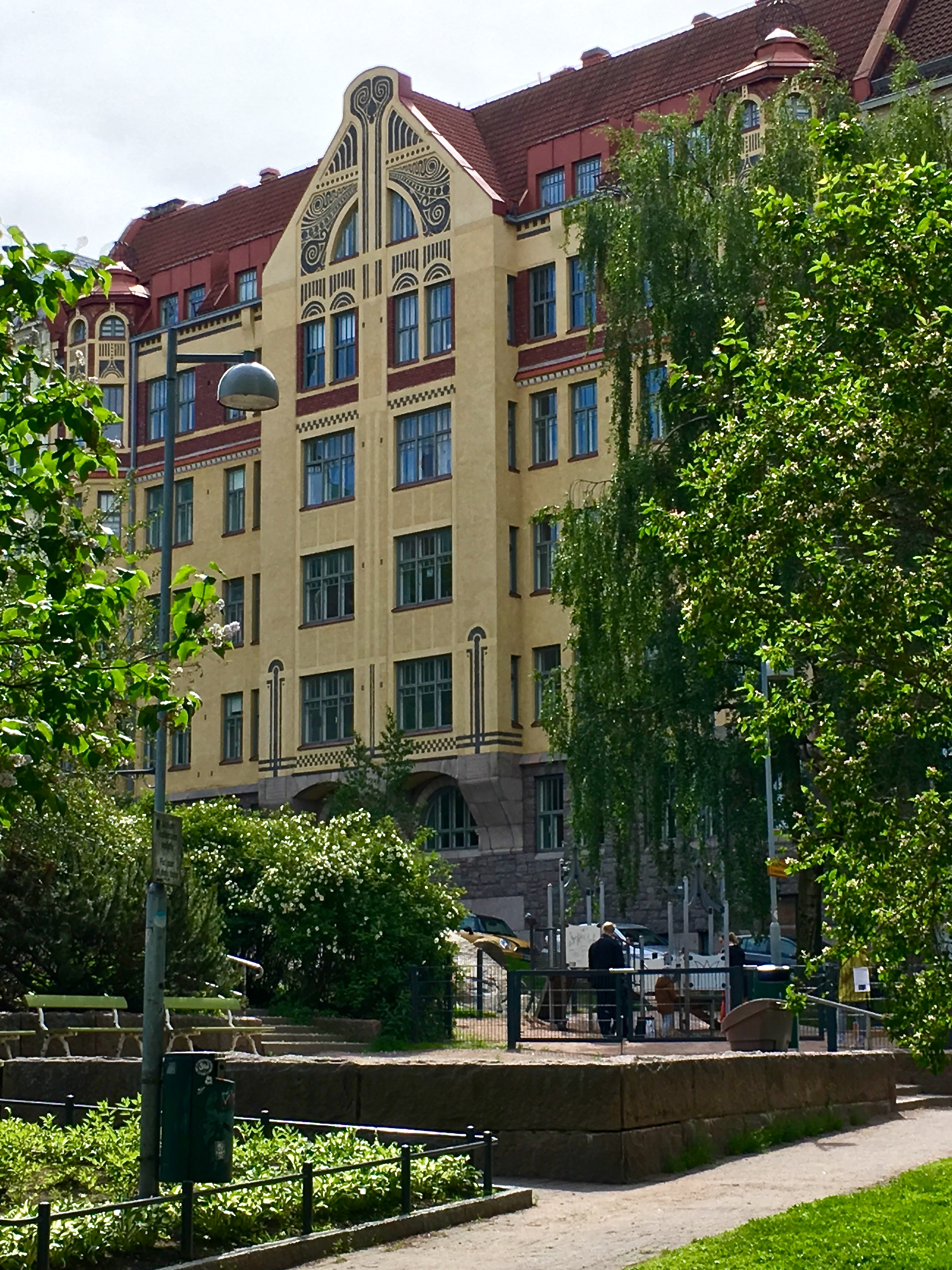 I have no idea what this building is, but I love the Art Nouveau details. Everywhere you go in downtown Helsinki, you’ll run into these ornate buildings that look like important state offices but are often only businesses, residences, schools, and shops. Sure beats the heck out of all the boring, Post-Modernist, glass-ribbon buildings we have in Chicago.